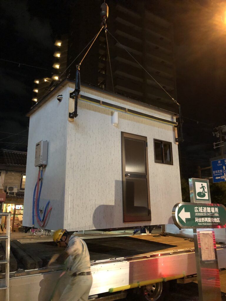 在来軸組パネル構法(BOXを吊って設置)を用いてホテル敷地内に